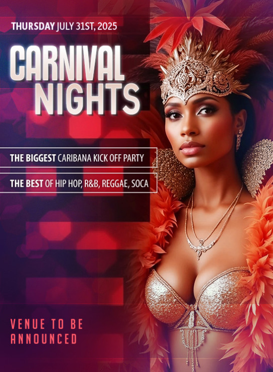 The annual Caribana kick-off Caribana party in Toronto Caribana 2025! This party is one you're going to remember. Carnival Nights will play the best of Hip Hop, Soca, and Reggae to prepare you for the weekend ahead.Purchase this event in Weekend Pass and save up to 50% or with a Hotel Package which includes tickets.