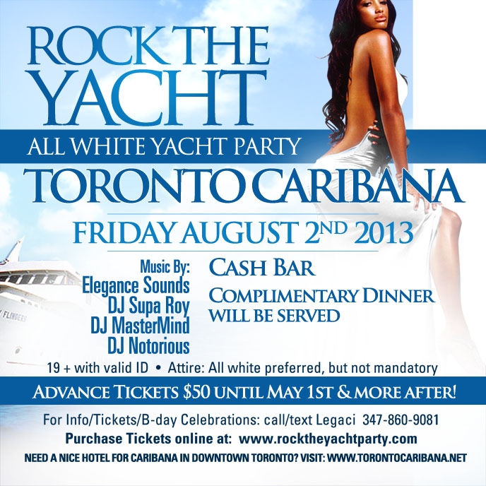 ROCK THE YACHT TORONTO CARIBANA CARIBBEAN CARNIVAL 2013 ALL WHITE YACHT PARTY @ TBA